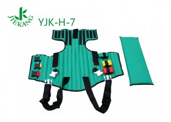 l 躯干担架配有2个可以反复使用的前额和下颌固定带、颈托护板和携带包装躯干夹板非常适用于交通事故解救中的颈椎和脊椎固定。