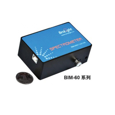 BIM-60 系列光纤光谱仪采用通用的光机平台,尺寸只有名片大小,非常方便携带。优化的光路设计使光学分辨率高达0.5nm-1.5nm。用户通过选择不同的光栅配置可以获得不同的光学分辨率和光谱响应范围。为了满足不同的需求,我们提供波长响应范围为300nm-1100nm 和200nm-1000nm 的探测器供用户选择。
