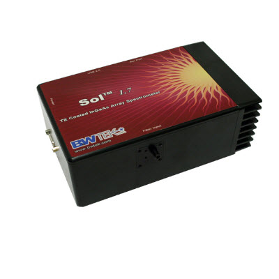 SolTM1.7为B&W Tek推出的高性能线阵TE致冷铟镓砷(InGaAs)阵列光谱仪,可选256元,512元(标配),或1024元。线阵铟镓砷检测器采用半导体致冷至-10℃,能有效降低暗噪声、增大检测器的动态范围以及提高检测限,这使得光谱仪可以用于更长积分时间下的检测,例如对于微弱信号的检测。