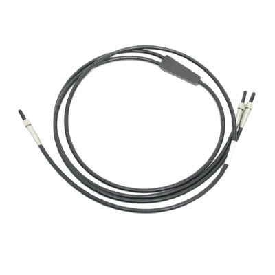 双接头光纤系列,采用Y型设计,在样品前端采用光纤束结构。其Y型另外两端,各接一根光纤,他们一端可接到光源上,或者将入射的光分到两个不同的通道上。当将一个准直镜接在光纤的公共端并调整到合适的位置时,可测量0°入射角的镜面反射。