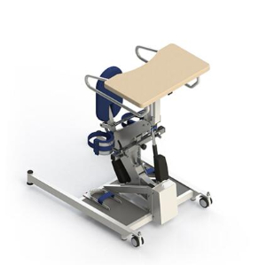1,设计为坐姿起立,可以方便的把患者由轮椅直接转移到站立架上,减少传统站立架所需的人力搀扶,既方便又安全。