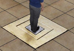 本装置的两个脚踏板可上下翻转,在脚踏板上下翻转的同时,滑板可以向任意方向水平滑动,使训练者的立足点沿前后、左右、上下方向不停地移动,以破坏训练者的站立稳定性,训练者必须依靠本体感觉不停地调整自己,才能保持站立的稳定性。足底踏板及滑板的运动方向和速度可以是由预先设置好的程序来控制的,也可以是电脑随机给出的控制信号来控制。