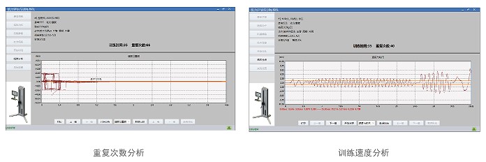 1)测试及训练报告指标:向心收缩与离心收缩最大输出功率、平均最大输出功率、平均运动速度、峰值力、重复次数等