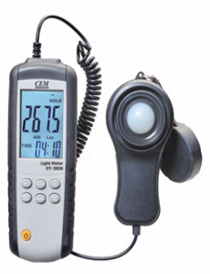DT-3808照度计|DT-3808照度测试仪凭借FC或LUX全量程提供准确的光度水平测量值,只需转换功能选择"lux"范围和设置目标量程,在水平位置移动光源的图片检测器和读取显示屏上的光度。