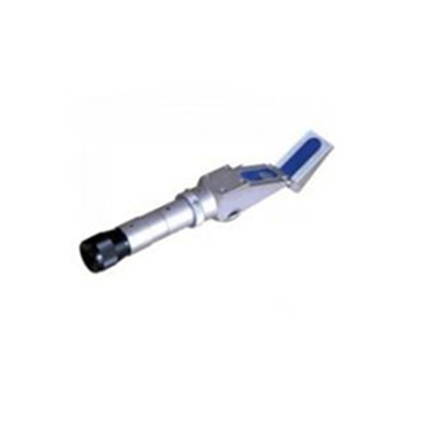 设计原理:光线从一种介质进入另一种介质时会产生折射现象,且入射角正弦之比恒为定值,此比值称为折光率。果蔬汁液中可溶性固形物含量与折光率在一定条件下(同一温度、压力)成正比例,故测定果蔬汁液的折光率,可求出果蔬汁液的浓度(含糖量的多少)。常用仪器是手持式折光仪,也称糖镜、手持式糖度计,通过测定果蔬可溶性固形物含量(含糖量),可了解果蔬的品质,大约估计果实的成熟度。手持糖度计一般是圆柱形的,将待测的糖液放入后面可打开的槽中,抹均匀,关上盖子,然后将糖度计对着光,从前面的孔中看,就可以读数了。