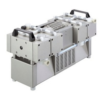 隔膜泵是干式运行的真空泵,完全解决了真空泵的抗化学腐蚀问题。它特别适用于需要抗化学腐蚀或需要长时间不间断运行的场合。所有与气体接触的部位都做特氟龙(聚四氟乙烯PTFE)处理并用碳纤维加固,完全保证了泵的抗化学腐蚀性能。隔膜采用三明治结构(即多层结构),以增加隔膜的韧性和强度。隔膜泵是目前国际真空泵发展的前沿产品,并在国内被越来越广泛地使用。