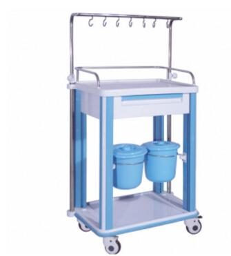 双桶ABS治疗车台面采用ABS模具成型,车体轻便,容易清洁,上下台面均配透明软玻璃。