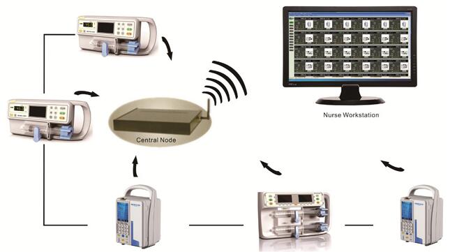 l 系统通过无线通讯方式实时采集各注射泵、输液泵,营养泵输注信息