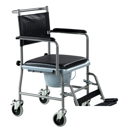 止滑脚板;前轮为5"万向轮;后轮为5"带刹车万向轮;配有可移动便桶。