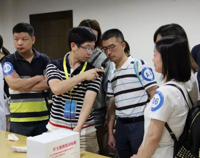 中华医学会麻醉学分会秘书白雪宣读了被授牌单位,并授牌。六家单位分别是:复旦大学附属眼耳鼻喉科医院、中南大学附属湘雅二医院、浙江大学医学院附属邵逸夫医院、中国人民解放军第三〇三医院、浙江省台州市中心医院和山东省聊城市人民医院,六家单位的代表分别作了本单位气道培训的简短介绍。 中华医学会麻醉学分会气道管理学组组长、北京医院麻醉科主任左明章教授为大家带来了“困难气道管理新进展”的精彩讲课,高屋建瓴,为“气道管理培训基地”的建设规范提出了标准。 紧凑有序的授牌仪式结束后,进入本日的第二主题“第二届上海气道管理技能大赛之电子支气管镜插管技能大赛”。这是在积累了多年气道管理培训经验、继去年“第一届上海气道管理技能大赛”和今年四月份的“国际气道管理学会气道培训(上海站)”之后,我科承办的又一次培训赛事。 比赛未至,培训先行,参赛选手的一天被安排得非常充实。开场讲课由中国医学科学院整形外科医院麻醉科薛富善教授为大家详解“可曲支气管镜引导气管插管操作技术要点和注意事项”,其中“可曲支气管镜引导气管插管12秘笈”可谓招招见血,令全场听众瞩目凝神,如获至宝。第二场讲课由我科魏玮医生介绍“纤维支气管镜和电子软镜:结构、原理、洗消、维护”,图文并茂,旁征博引,且表达流畅,使我对于纤支镜和电子镜长久以来的疑惑被一一解开,的确,临床感控无小事,讲课中提到的国内外多例内镜相关感染事件触目惊心,警醒我们每一位医生规范操作,患者安全是一切的前提。最后一场讲课由我科汪鼎鼎医生讲述“清醒插管进阶:从菜鸟到高手”,汪医生不久前应邀在新青年麻醉论坛开设了一堂同名网络公开课,目前已有逾八千人次的阅读量,创论坛新高,有听众表示“一次讲课解决了我所有纤支镜插管的问题”。 纸上得来终觉浅,绝知此事要躬行。午餐后,由汪鼎鼎医生主持进行纤维支气管镜训练箱的训练。训练箱是我科自主研发的针对纤支镜操作的练习工具,经过科室成员和第一届气道大赛培训考核的验证,能够显著提高学习者的操作技能。在训练箱上的练习犹如获取驾照前必经的驾校训练,交规想必已烂熟于心的医生们,要小路考、大路考各项目游刃有余,才能最终“上路”,为患者进行操作。参赛选手分成六组,由我科通过纤支镜考核的六位医生指导操作要领,虽然每人10分钟的练习令大家意犹未尽,但相信智慧的麻醉医生们在接受关键点拨后,加上勤奋练习,定能“从菜鸟到高手”。 训练之后,比赛进行。本次比赛也称为“优亿杯大白寻宝软镜技能大赛”,由优亿公司提供比赛用电子软镜和训练模型——大白。大白是个简易模拟人,内部有支气管树,每根枝桠末端有不同的实物图片,比赛要求在限定时间内,用电子软镜从大白内找出抽签信封内的所有图片,速度快者获胜,项目裁判由上海麻醉专委会气道管理学组的四位专家吴飞翔、黄施伟、李盈科和张旭担任。经过紧张角逐,最终有三位医生脱颖而出,他们分别是:冠军,来自长海医院的卢文斌医生;亚军,来自华山医院的张俊杰医生;季军,来自仁济医院的石潇医生,他们将代表上海赛区参加不久后长沙的全国总决赛,祝愿他们取得好成绩。 正如李华书记所言,我院每年有超过5000例眼科和超过15000例的耳鼻咽喉头颈外科全身麻醉,在困难气道处理、喉罩使用和专科麻醉管理等方面具备丰富的经验,麻醉科近年来在李文献主任的带领下注重气道培训师资队伍的建设,已有一套成系列的气道管理培训项目,成功策划的2016年“第一届上海气道管理技能大赛”和2017年“国际气道管理学会气道培训(上海站)”等项目,得到了国内外专家和同道的高度认可,在组织气道培训方面可谓万事俱备,如今被医学会授予“气道管理培训基地”的称号,犹如吹来东风,既是肯定,更是责任,我科将会继续努力,不负期望。 在金秋十月,还将迎来我科承办的又一培训赛事——声门上气道工具管理技能培训及大赛,欢迎有志同道踊跃报名。