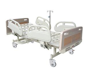 该床外型美观、坚固耐用,可承重250KG以上,摇手柄转动灵活并有两极空转限位装置。无噪声的静音脚轮(对角刹车),使床移动灵活、轻巧、方便。配四个PP护栏(可上下定位)、不锈钢输液架、引流挂钩。