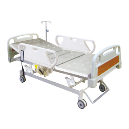 PE床头、床尾,进口材料、坚固耐用、方便装卸。床面为鞍钢产冷轧板、管。框架结构采用氩弧焊接工艺,刚度增强,承载力大。床体采用进口专用生产线进行整体清洗、表面磷化处理、喷塑、高温固化,不产生锈蚀,保证了正常使用。PE护栏进口材料,耐受冲击,上下移动,安全可靠。配置体液挂钩及不锈钢盐水架。