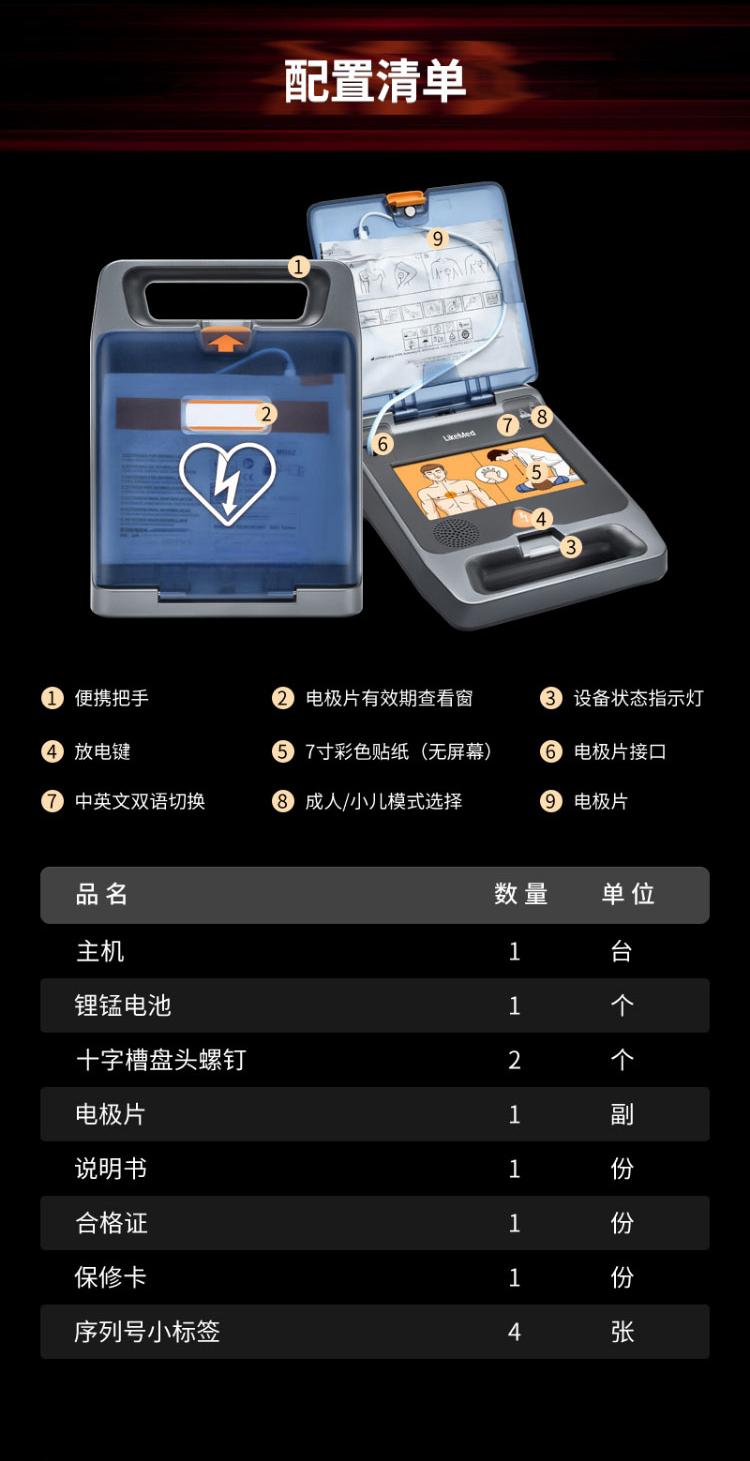 5.AED 半自动体外除颤器 BeneHeart S1A(基础版)参考信息中涉的配件品牌生产批次不同生产厂家存在更新或替换的可能性,具体实物为准。