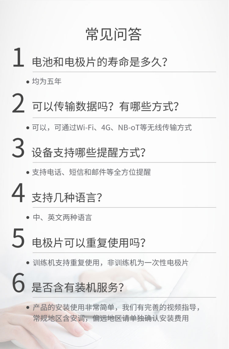该产品由主机、电池以及电极片组成,电池和电极片信息见附页。