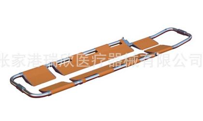 采用分离型刚性结构,转送骨折及重伤病员。两端设有离合装置,使担架分离成左右两部分。在不移动病人的情况下,迅速将病人铲入或从病人体下抽出担架。担架长度根据人身长可作随意调节。担架一端(脚部)采用窄框架结构。