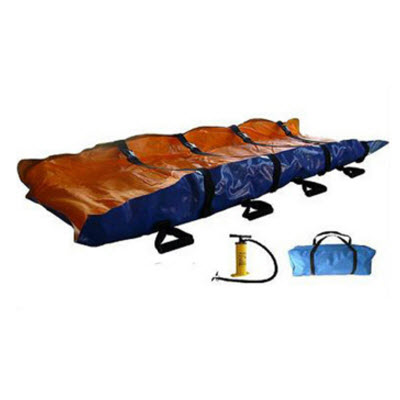 急救担架采用真空成型原理,将气垫内空气抽出,形成硬性固定成型体,该产品轻巧简便、特别有利于群体伤者的转移、运送。