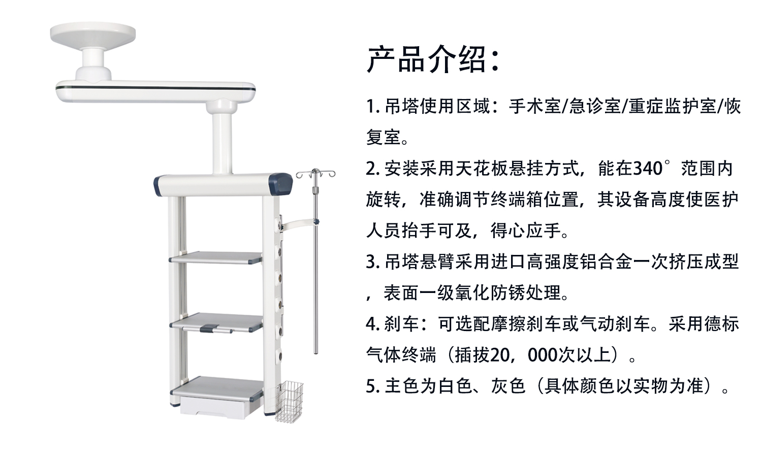 首页 > 医疗器械 > 手术急救/护理 > 手术设备 > 吊塔/吊桥 > 机械单臂旋转吊塔腔镜塔 HFP-SD90/160(N)