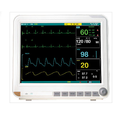 本款病人监护仪采用12.1英寸液晶屏,全导联心电监护,可监护心电、心率、血氧饱和度、无创血压、体温、脉搏、体温、呼吸率,可选配连接中央监护实现远程监护,可选配内置打印机,整机通过CE认证。