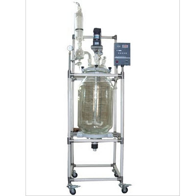 双层玻璃反应釜 用途:玻璃反应釜为双层玻璃设计,内层放入反应溶媒可做搅拌反应,夹层可通上不同的冷热源(冷冻液,热水或热油)做循环加热或冷却反应。在设定恒温条件下,在密闭的玻璃反应釜内,可根据使用要求在常压或负压条件下进行搅拌反应,并能做反应溶液的回流与蒸馏,是现代精细化工、生物制药和新材料合成的理想中试、生产设备.