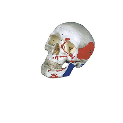 这款新开发的自然大成人头骨模型显示:活动下巴、切开的头盖骨和骨缝线,头骨的表现极其逼真。分成三部分。
