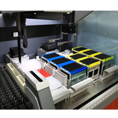 NASE型全自动核酸提取平台亦可整合全自动热封膜仪和荧光定量PCR仪,将配制完毕的PCR反应体系,通过轨道传输至热封膜仪后,再由轨道将封装完毕的PCR反应板置入荧光定量PCR仪进行后续扩增检测。整个流程都由仪器自动化完成。具有便捷,快速,高效,高通量等特点。可广泛应用于科研、制药、法医鉴定、医院、血站、CDC等领域。