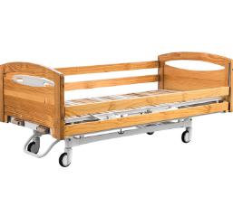 ●实木床头尾,实木护栏。●配5寸中控单轮。中控刹车●双摇功能:背部抬起75°±10°脚部抬起35°±10°●配输液架1套、引流袋挂钩2个,输液架孔4个;鞋架***个,阻尼餐桌1个