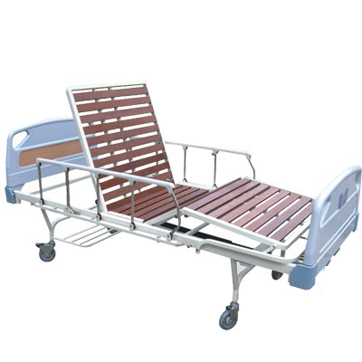 * 4节中空木质床板,分别为背板、坐板、大腿板、小腿板,由手摇丝杆驱使实现床的升背曲腿等功能;床板易拆卸,便于清洗消毒;