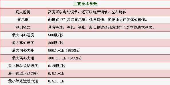 应用转动力矩响应可能确保患者的肢体速度在加速和减速时与所运用的转动力矩成比例地增加或减少,从而进行神经肌肉控制测量。选择向心收缩或者离心收缩可以进行可变阻力肌力训练。System 4型等速肌力评估训练系统的向心力矩可以达到500英尺磅(680Nm),离心力矩达到400英尺磅(542 Nm),这完全可以适应高水平运动员和运动医学研究者的需求。转矩极限可被设置为5英尺磅(7Nm)。如果在离心收缩期间超过转矩极限,那么系统运转会停止。一旦患者的转距输出降至规定极限以下,那么运动可以继续进行。这一独特的性能允许患者在明确规定的亚极限力水平安全地进行运动,并结合等轴收缩,向心收缩和离心收缩,可以增强肌力、减少关节渗出液、增加关节活动度。