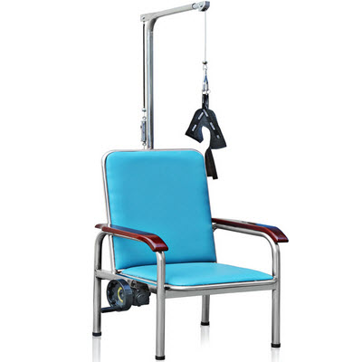采用人工机械传动实行牵引的一种新型颈椎牵引机,适用于各种类型的颈椎病、外伤性颈骨折、错位及脱位、并发不全截瘫或偏瘫,也适用于颈性头晕头痛、血压异常、视力及语言障碍等临床症状。