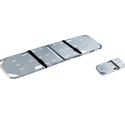 本担架无轮、无支腿,可折叠。采用高强度铝合金材料及刚性担架面结构,它具有体积小,携带方便、使用安全、易消毒清洗等优点,主要适用医院、体育场地、救护车运送伤病员。更适用于大面积骨折伤员使用,担架前后孔用来配用头部固定器同时使用。
