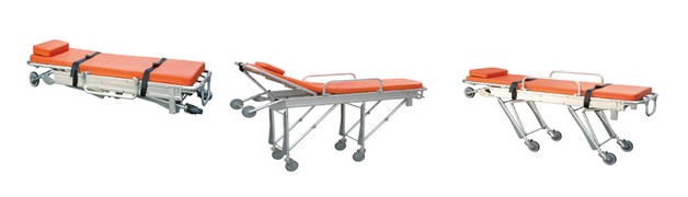 本担架车上车轮依据救护车车厢底板高度分三档调节,适用各种救护车的车厢底板高度 ;