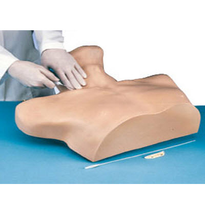这款模型适用于练习中央静脉插管技术并特为急诊范围研制。解剖上精确,触感如同于真正病人一样。触诊时锁骨窝“下沉”,并可感觉胸锁乳突肌,锁骨和其他支持组织。展示了内血管: 锁骨下静脉、颈内静脉、颈外静脉和颈动脉。可使用Swan-Ganz导管。模型颈部向左倾斜,很容易找到各定位点。提供备用皮肤、导管密封剂、针、人造血液和手提箱。