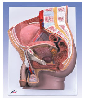 这款中切模型展示了男性骨盆的所有重要结构。生殖器的一半可拆卸,以便研究内部结构。置于基板上,也可固定在墙上。
