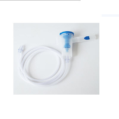 产品由医用高分子材料制成,是由雾化杯、呼吸面罩、医用三通、咬嘴、单向阀门、连接管、鼻吸管、 压缩空气式雾化器(另外配置,可重复使用)等部件组成。