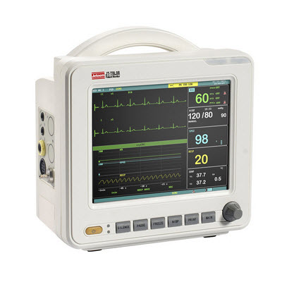JT-T8L08 多参数监护仪,适用于医院对患者进行心电、无创血压、心率、脉搏氧饱和度、呼吸、体温等生命体征的监测。