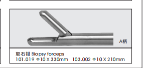 胆道取石钳,包括固定手柄、活动手柄、钳杆、拉杆,固定手柄与活动手柄转动连接,其特征在于还设置有固定钳夹、活动钳夹、钳座、拉杆座、钳杆座,活动手柄开有拉杆槽,钳杆座套入固定手柄用固定螺丝固定,固定钳夹、活动钳夹均开有碗形槽,两个碗形槽互相配合,固定钳夹、活动钳夹互相交叉用钳夹销固定在钳座上,活动钳夹的尾端用拉杆销固定在拉杆上,拉杆一端与活动钳夹连接,拉杆另一端开有拉杆座,拉杆穿过钳杆、固定手柄,拉杆座套入拉杆槽,钳杆与钳座固定连接,钳杆中前部呈弯型。本实用新型采用金属材料制成。