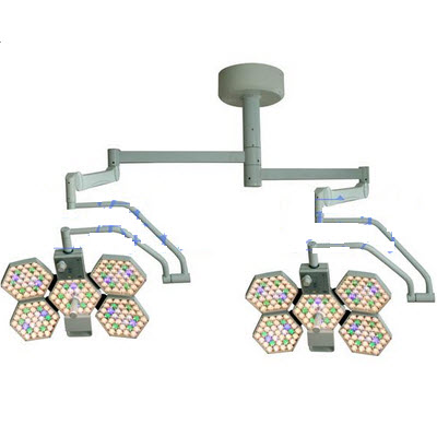 SY02-LED系列LED无影灯有5个和3个多透镜光源矩阵组合而成,其中每个多透镜光源矩阵包含了一定数量的LED(发光二极管)光源,而每个LED光源均可单独发光并经各自的反射面反射,再经过汇聚型光学透镜在手术区域形成不同聚焦置的光域,这些光域的组合实现了表面和深部超强且均匀的照明效果,可以满足各种手术的需要