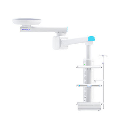 双臂电动腔镜塔适用于大型手术室使用,采用天花悬挂方式、高承载能力,塔体和双臂能在一定范围内不同方向旋转340度,并配置气动刹车防飘移,塔身配置有设备平台以及氧气、负压、空气、二氧化碳等医气终端及电源输入和网络插座等,操作方便简单,轻松到位,得心应手。