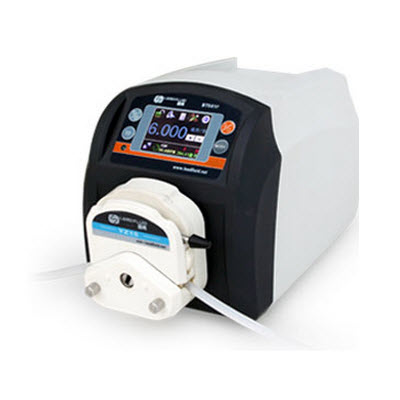 BT601F分配型智能蠕动泵流量范围0.006~2900毫升/分钟。采用彩色液晶和触摸屏技术,操作界面简单,直观,明了。主要适用于各种复杂的液体定量分配,适用于精确计量和定量给料,可以实现高精度的流量传输控制。对液量分装精度要求高时,使用液量分配模式更加方便;对产量要求高时,使用时间分配模式更加方便;需要将一定液体分装为若干份液体时请使用复制分配模式。设置为流量模式时,完全等同于一台流量型蠕动泵。为了减小不必要的风扇噪音,采用了智能温控技术。在RS485通讯中,因为采用了MODBUS协议,更易于与其他控制设备如计算机,人机界面,PLC等连接。