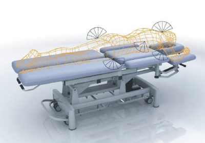 4、床身一体式万向控制开关,医生可在床体周围任意角度调整床体,方便操作治疗;