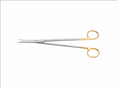 即精细化的综合组织剪,供剪切血管、粘膜或游离组织用。特点:一剪刀片刃口镶有高强度硬质合金片处理,一剪刀刃口开齿,使得剪刀在使用过程中咬切更快速,咬合力更强劲,指圈镀金色标示。