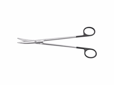 用于软组织的剪切或分离。特点:剪刀超锋利处理,一片开细剪刃,一片剪刃开细齿,使得剪刀在使用过程中咬切更快速,咬合力更强劲,指圈镀黑色标示。