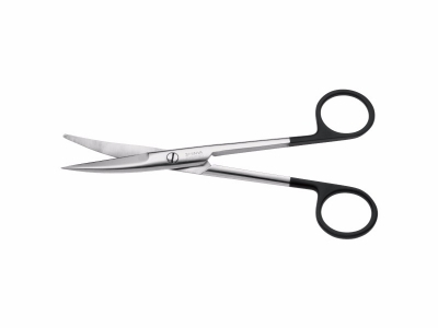 用于剪断缝线、敷料(多用直剪),也用于一些软组织的分离、剪切(多用弯剪)。特点:剪刀超锋利处理,一片开细剪刃,一片剪刃开细齿,使得剪刀在使用过程中咬切更快速,咬合力更强劲,指圈镀黑色标示。