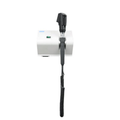 仪器接通电源,从电箱手柄支架上取下检影镜手柄,操作者手持检影镜手柄。