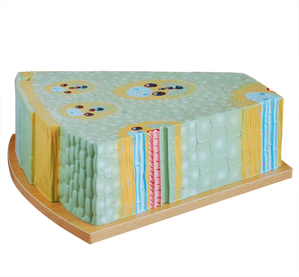 本模型取材于玉米茎,示单子叶植物纵横切面的解剖结构,包括表皮、管束、基本组织。纵剖面上示环纹、螺筛、孔纹导管和筛管,筛管和结构示厚壁、薄壁等各种类型细胞的结构。