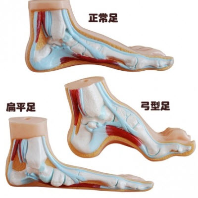 BOU-XC326足弓模型显示了正常足、扁平足、弓形足的解剖结构及其胫骨末端的特征。