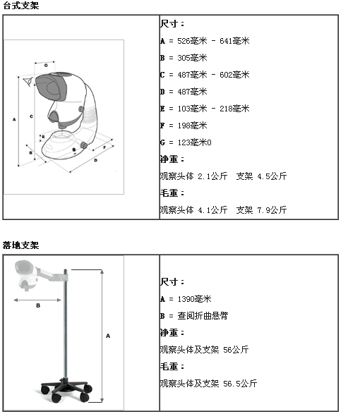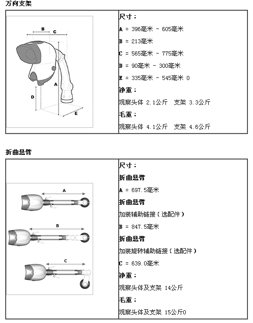 落地支架(装插折曲悬臂)适用于检测固定不动的工件,或要求以站立的姿势进行。