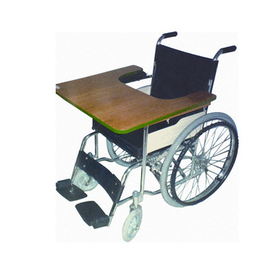 2、轮椅上配有桌板,可进行日常功能训练等活动。