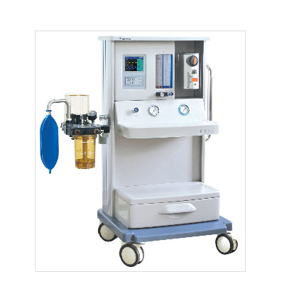 本款麻醉机的部件均采用进口材料,集成化呼吸回路,四管流量计,彩色液晶显示屏,同屏显示压力时间、流速时间波形,具备容量控制(VCV)和电子PEEP,整机通过CE认证。