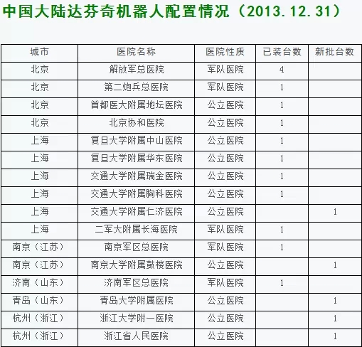 截至2014年12月31日,全球共有3266台“达芬奇系统”,其中美国2223台,欧洲549台,亚洲350台。